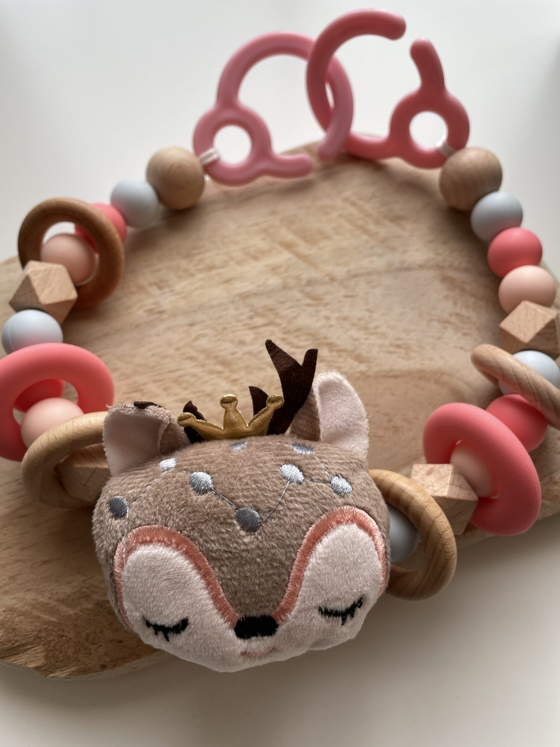 Wij maken ook fopspeenkoorden en bijtringen in bijhorende kleurencombinaties.
